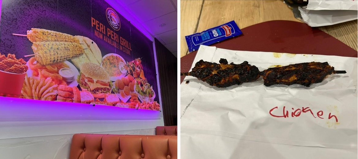 UPDATED REVIEW, MARCH 2024 OK so based on the owner's response I went back to the restaurant again, and this time got beef burger + chips + peri peri wings + milkshake. All are delicious, great service, clean tables, affordable prices. They also apologized for the previous burnt satay order with a nice discount. Bonus point: There was a disabled person among the customers who started shouting, the owner professionally calmed him down. Very nice move. Updated to 5 star. ORIGINAL REVIEW, FEBRUARY 2024 Just ordered from this place for the first time with high hopes, but such a disappointment unfortunately.. The prep and delivery time, along with the chips, met my expectations. But can’t say the same for the rest of the food.. Fried chicken burger: The fried chicken burger included an unexpected large potato piece not mentioned in the menu, which felt out of place. More importantly, the fried chicken itself was overly oily and lacked the expected crispiness, being soft throughout. Chicken satay: Couldn’t really taste anything really because it was overly burnt.. Beef satay: Couldn’t really taste anything really because, well, it was overly burnt again.. Someone put these on a grill and went to a smoke break I guess. Plus, the texture of the beef was so chewy. For the burns: See the photos. I really couldn’t eat any of the satays. I might give another shot in the future but for now, and believe I have no pleasure saying this but it was such a disappointment.. Response to the owner: Thanks for your message! Hash brown was not written on the menu on the delivery app - but that’s no big deal. Slight miscommunication and it happens. For the satay: I’ll definitely pop up!